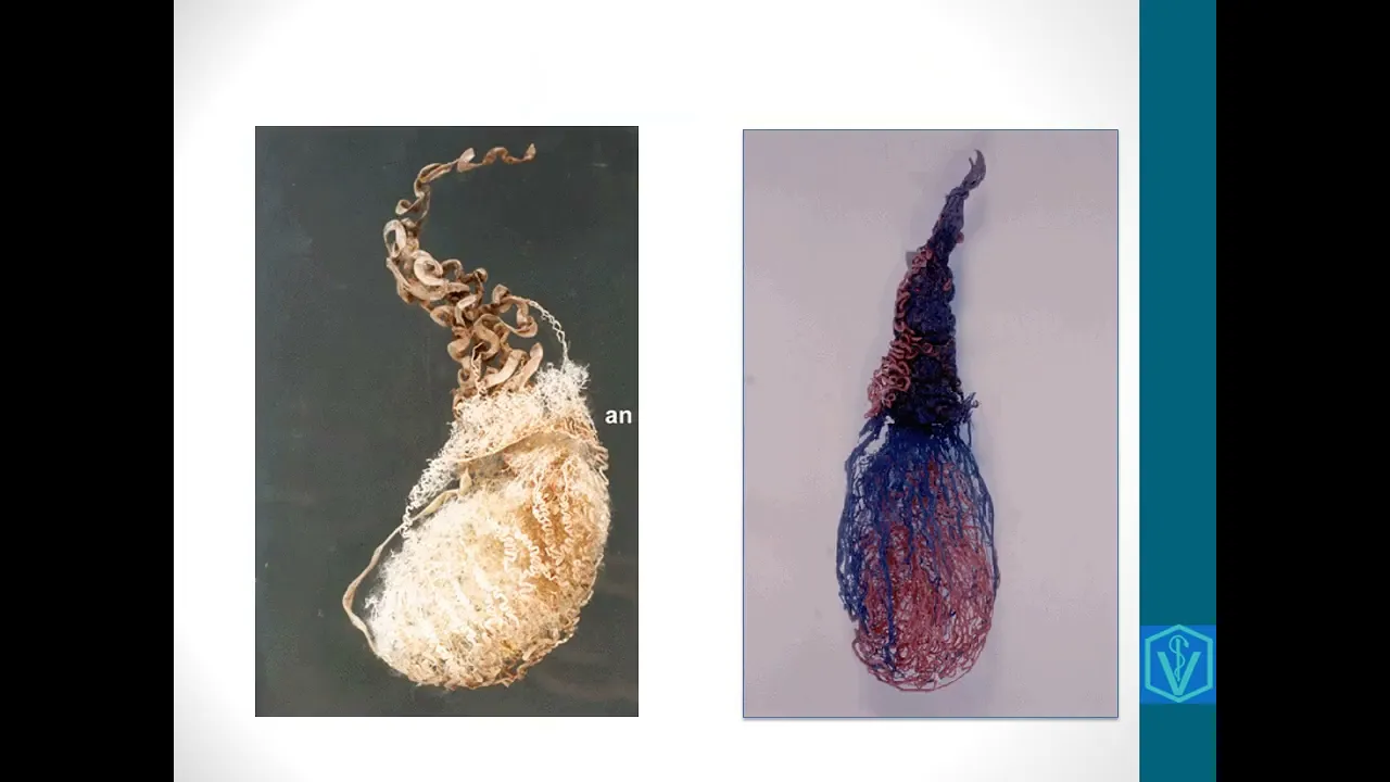 crema cadar plexo pampiniforme enfim todas essas esses componentes ajudam nessa termorregulação olha aqui ó testículo de cão né Tá certo então para o funcionamento eficiente esses testículos no míos sempre devem ser mantidos a uma temperatura mais baixa que o corpo por isso que ele fica fora da cavidade se ele ficasse dentro da cavidade abdominal pélvica ali ele ia tá mais quente e aí não seria esses espermatozóides eles iriam morrer então aqui a gente vê nessas imagens né esse enovelado de de vasos que tem os com o látex azuis são os vasos venosos que levam sangue