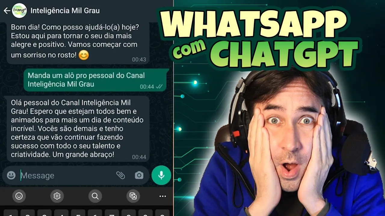 vamos lá então bom dia bom dia como posso ajudá-lo hoje estou aqui para tornar seu dia mais alegre e positivo Vamos começar com um sorriso no rosto manda um alô pro pessoal do canal inteligência mil grau Olá pessoal do canal inteligência mil grau espero que estejam todos bem e animados para mais um dia de conteúdo incrível Vocês são demais e tenho certeza que vão continuar fazendo sucesso com todo o seu talento e criatividade um grande abraço como vocês estão vendo nós estamos fazendo Integração no chatgt com essa ferramenta tão essencial que é o WhatsApp é