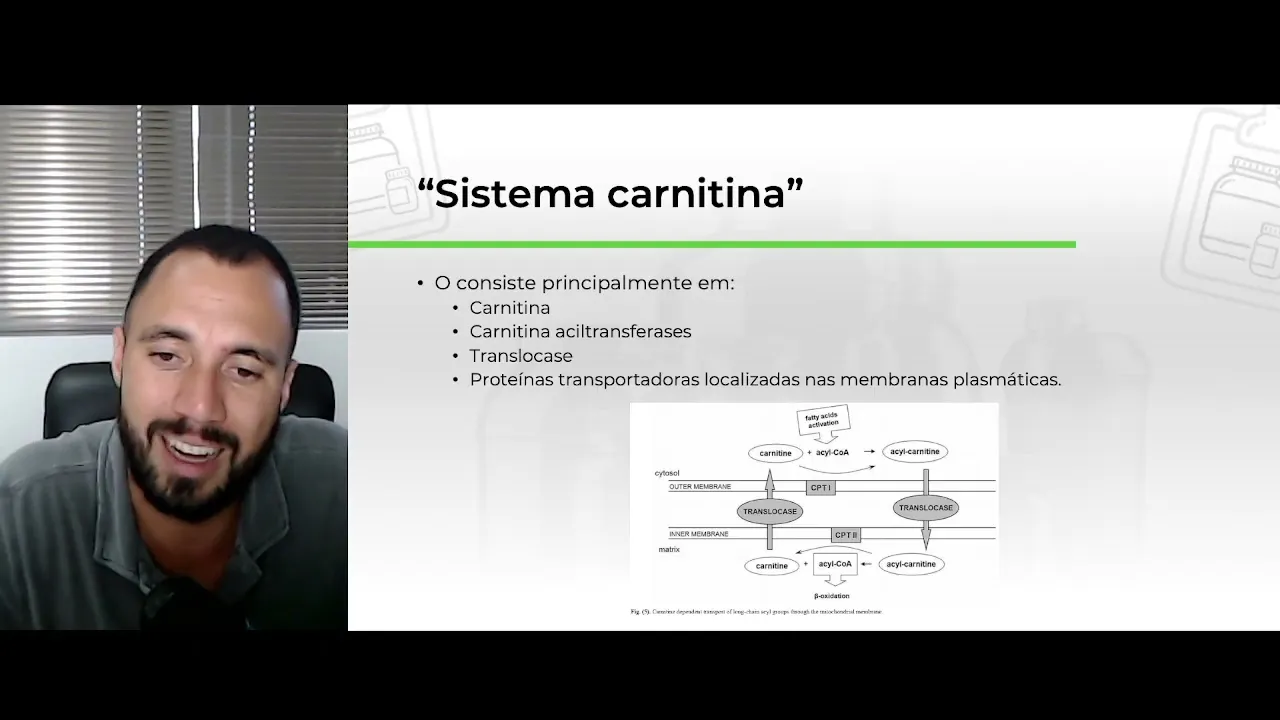 Olá tudo bem seja muito bem-vindo muito bem-vinda a mais uma aula nessa aula nós iremos discutir um suplemento muito comum né acho que você já deve ter ouvido alguém falar que tava utilizando carnitina para emagrecimento né muito utilizado a tal da L Carnitina essa aula nós iremos entender o que que é n os possíveis mecanismos as hipóteses e o que que de fato existe na literatura de benefício como a suplementação de L Carnitina para emagrecimento elic carnitina gente é um produto natural uma substância natural de ocorrência natural em nosso organismo tá certo é uma mina
