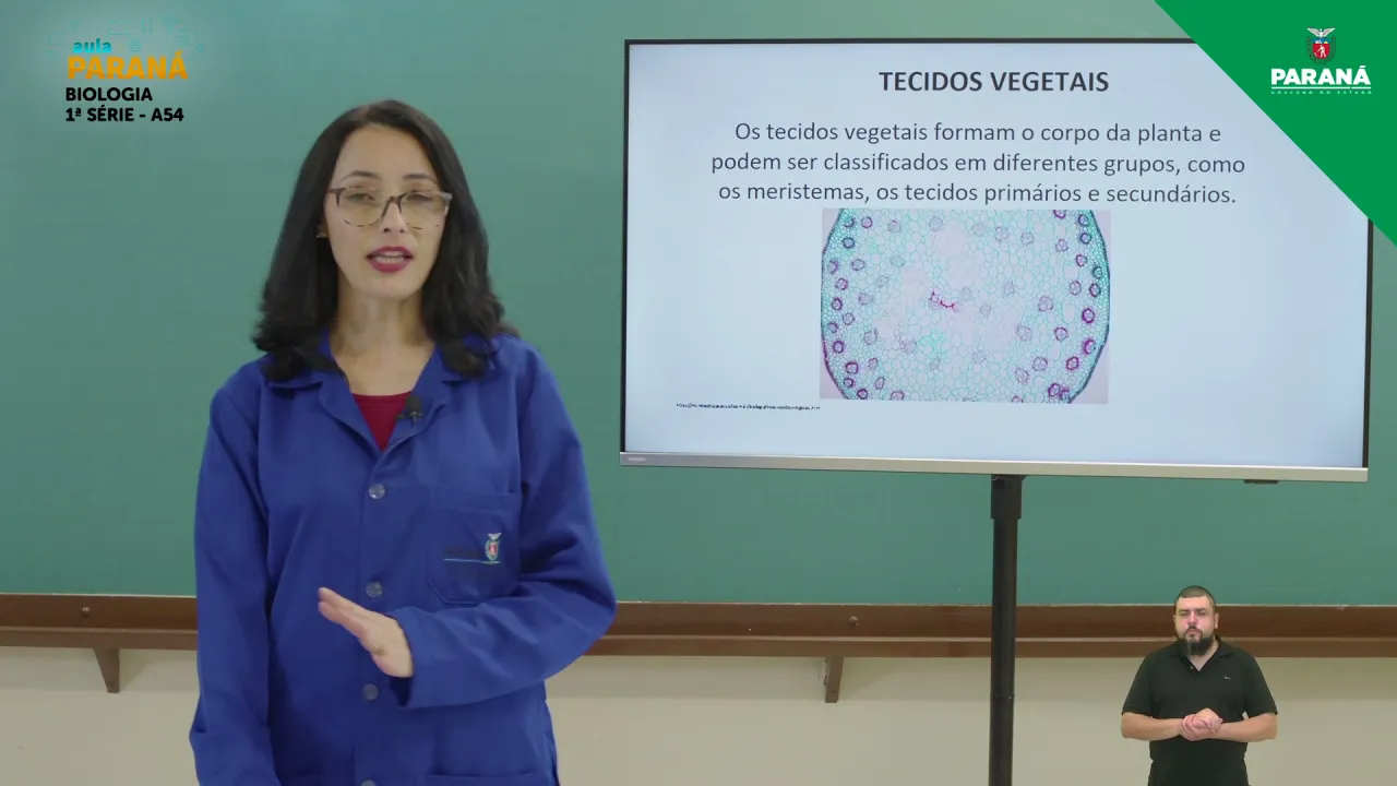 os tecidos vegetais e depois nós vamos falaram os tecidos animal Então as plantas Ela também tem tecido que vão compor o corpo dela né a estrutura delas então aqui nessa imagem nós podemos observar aqui ó que é um corte de um caule foi cortado pelo meio tá nós temos várias estruturas cada bolinha dessa questão de segundos então célula e eles podem ser o corpo da planta pode ser classificada né De acordo com o tipo da célula pode ser meristema pode ser tecido de Mário secundário né E a gente vai conhecer Algum deles nessa aula os