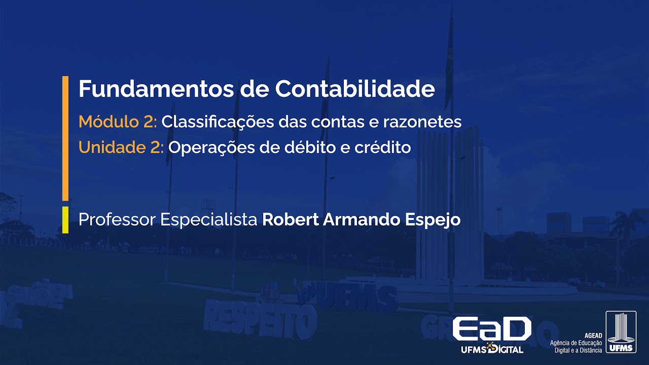 [Música] Olá Estamos dando início a mais uma aula disciplina fundamentos de contabilidade meu nome é professor Robert o módulo 2 classificações das contas e razonetes classificação das contas vão ser abordadas a natureza como elas são interpretadas e organizadas tá de acordo com o método utilizado pela técnica contábil tá [Música] as classificações das contas elas são subdivididas em contas patrimoniais e contas de resultado Então tudo tiver envolvendo o patrimônio de uma de uma entidade de uma organização ele vai fazer parte da classificação de uma classificação específica em grupos e as contas de resultado tudo que vou