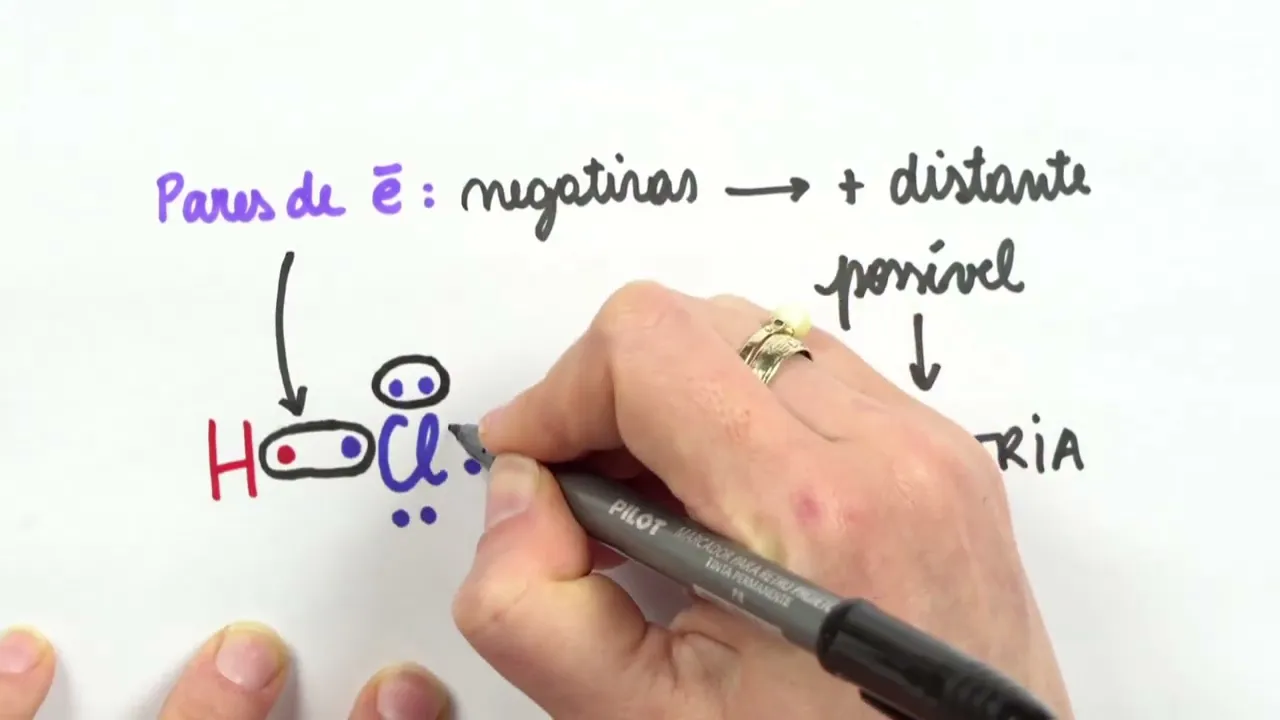 espacial em que a repulsão seja mínima porque de novo cargas negativas se repelem e quando que a repulsão é mínima Quando essas cargas tiverem o mais distante possível e essa orientação da molécula é o que a gente vai chamar de G ometria então só para vocês entenderem o que a profe tá falando quem que são pares de elétrons né os pares de elétrons eles podem ser os pares que vão estar dentro da ligação química que aquela molécula faz então cada ligação tem um par de elétrons mas os pares de elétrons eles podem ser tanto então