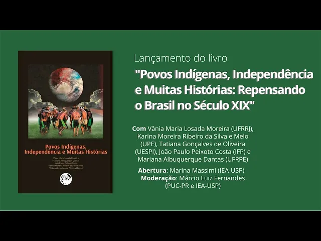 livro imagem que nós temos aí da ilustração do Cadu Santos né sobre esse Esses povos que são do futuro não do passado e muito interessante o selo da editora CRV povos indígenas Independência e muitas histórias e aqui nós estamos Conversando justamente com os organizadores deste da Alice no livro Vamos então passar agora a fala então agradecendo a professora Vânia a Karina Moreira Ribeiro da Silva e Melo né que está aqui conosco e vai continuar essa conversa ela que é mestre Bacharel história pela Universidade Federal do Rio Grande do Sul Doutor em história pela Unicamp professora