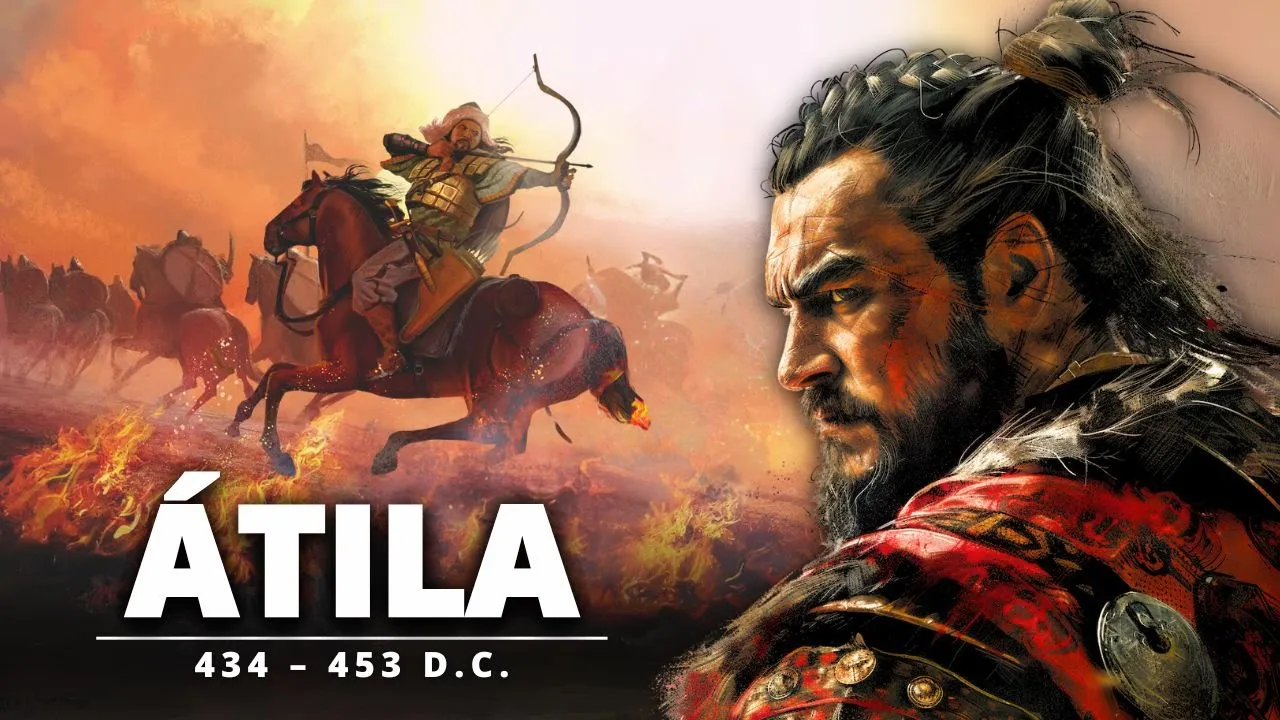 romano do ocidente mas naquele dia todo seu poder e bravura na hora de combate não valeram de nada Afinal de contas ele havia partido de uma forma bem misteriosa e é aí que algumas perguntas ficam Será que houve algum crime envolvido a morte de Átila foi por causa de algum acidente ou por causa naturais ou será que foi a sua própria esposa que o matou mas primeiramente precisamos entender Quem foi Átila E por que o caso dele tem tanta importância na história e é isso que nós vamos ver no vídeo de hoje vamos voltar um