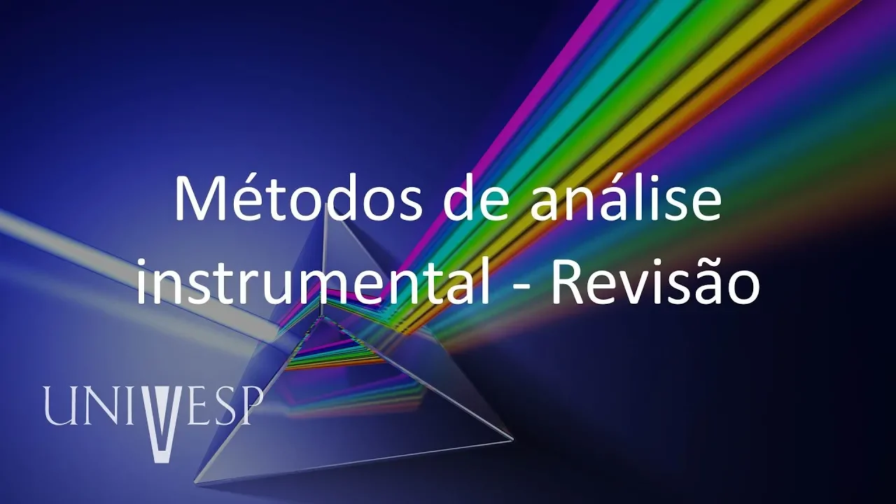 [Música] o [Música] olá vamos iniciar agora uma aula de revisão nessa aula nós vamos rever todos os instrumentos de análise instrumental todas as formas de se realizar uma análise os cronogramas hoje pq os espectros que se obtém por essas análises nós vamos fazer uma revisão geral de tudo o que foi visto no curso os tipos de métodos instrumentais então eles são espectroscópicas eletrolíticos ou cromatográficos os métodos aspectos espectroscópicas eles são baseados em propriedades óticas ou seja na propriedade de umas determinada substância é interagir com uma radiação eletromagnética e gerar um sinal a partir disso os