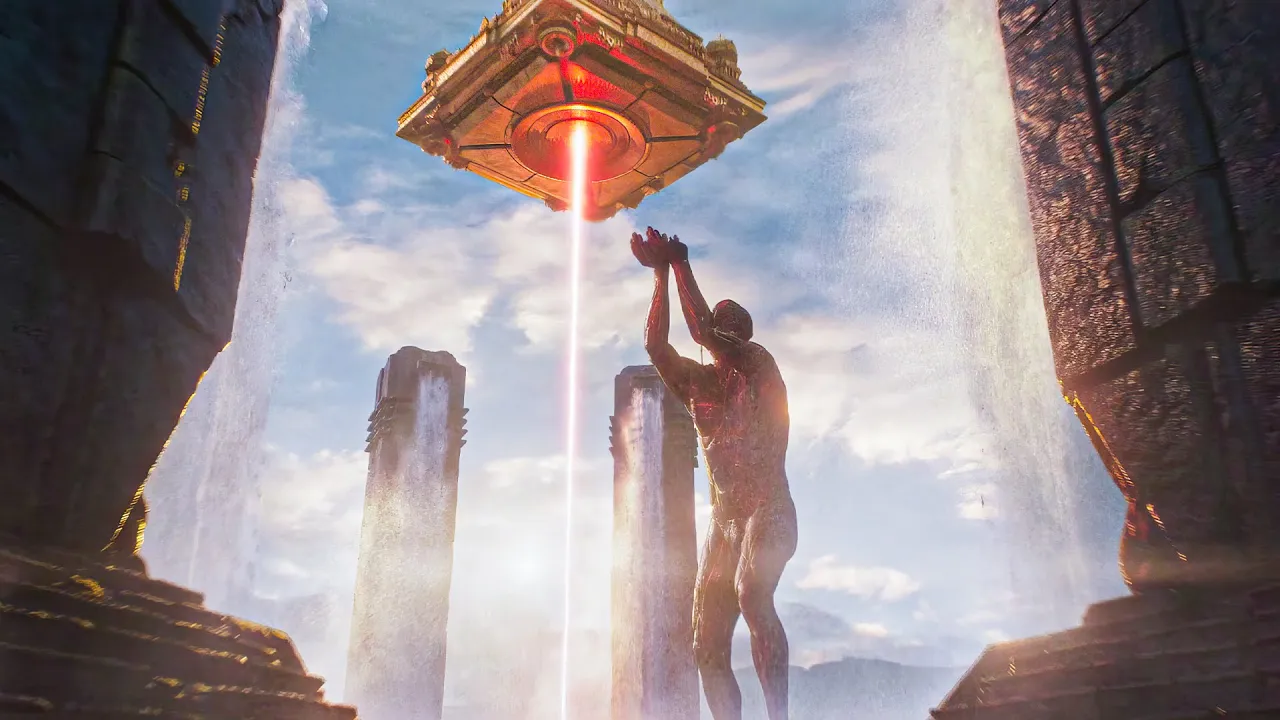 Bhairava jumps on Ashwatthama with his huge metal fists and for a few seconds they’re stuck grabbing each other, yet this time Bujji is stronger and throws Ashwatthama off. Bhariava then tries to make his way out only for Ashwatthama to rise through the ground and pull the robot off the bridge. Manas’ soldiers invade Shambhala, where the rebel guards are gathering with their weapons.