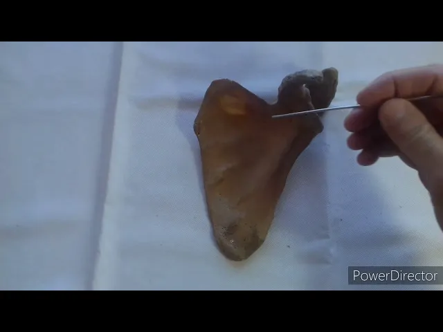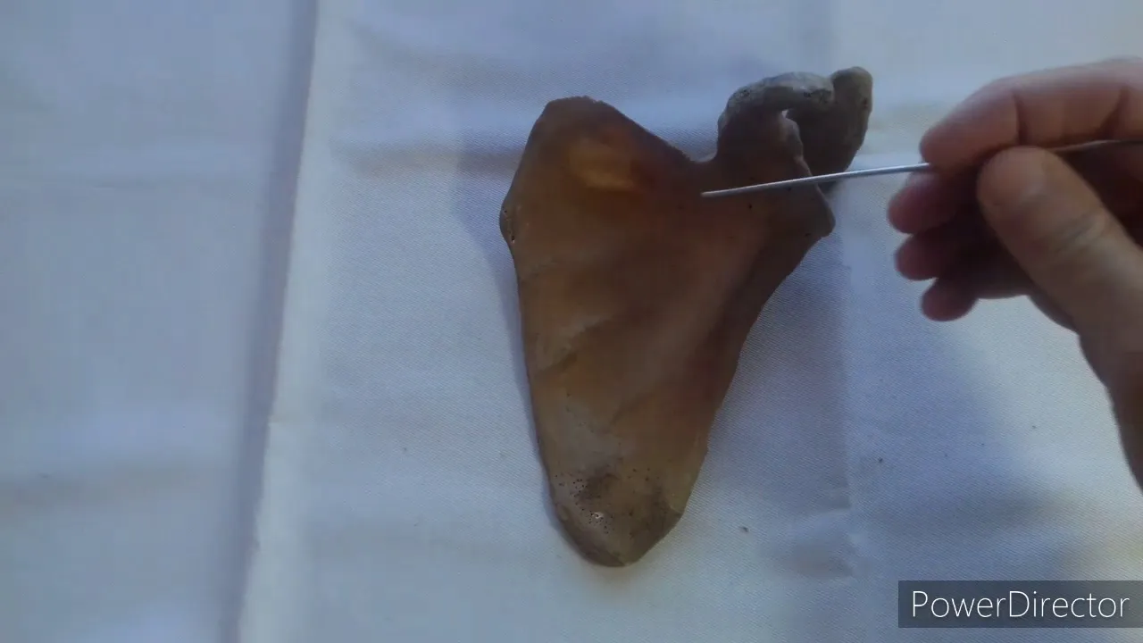 por un ligamento que se llama korac o vídeo por ahí pasaba el paquete supraescapular porque está arriba del escape vamos a ver los vértices tenemos un vértice inferior donde se inserta un as de fibras del músculo dorsal ancho un vértice superior donde se inserta el músculo angular del omóplato y un vértice externo que es este que es el más complejo en el vértice externo tenemos esta oficina que tiene así forma de dedo muy rugosa que es la apófisis cora coidh es en las oficinas con acordes se van a insertar gran cantidad de músculos y ligamentos