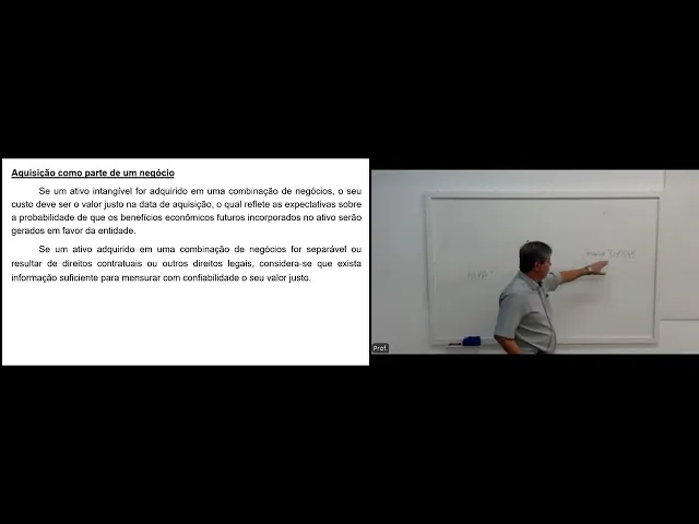 000 como despesa financeira como custo financeiro de acordo com o parcelamento que a empresa fez isso eu acho que vai ficar mais claro para vocês nas próximas aulas quando nós falarmos de eh empréstimos e financiamentos tá então eu acho que isso aí vai ficar mais claro como eu devo apropriar esse 5000 Men aente como despesa tá bom ok aquisição como parte de um negócio se um ativo intangível for adquirido em uma combinação de negócios tá o que eu quero dizer isso aqui pessoal quero dizer o seguinte vamos supor que uma empresa esteja adquirindo uma outra empresa e além do imóvel estoque móveis utensílios a carteira de clientes o saldo a pagar tá as obrigações que a empresa possui tá a empresa adquirente também está adquirindo a marca e as patentes que a outra empresa possui Então ela está adquirindo eh tudo inclusive o direito de exploração da marca daquela outra empresa Tá então vamos dizer o seguinte vamos lá tá a empresa Alfa a empresa Alfa ela está adquirindo a empresa Ômega beleza e o que que a empresa Alfa tá comprando da Ômega tá comprando todos os bens prédio o imóvel terreno eh móveis e utensílios computadores estoque veículos máquinas equipamentos tá comprando tudo da empresa Ômega tá tá comprando também os direitos então tudo que a empresa Ômega possui lá na carteira de clientes lá receber agora quem vai receber a empresa Alf Alfa também ela está adquirindo as obrigações Ok perfeito bom dentro desses direitos dentro desses direitos vamos imaginar que existe a marca Ômega então a empresa Alfa também está comprando a marca Ômega e vai explorar essa marca Ok bom perfeito se no contrato de vendas se no no contrato que está sendo fechado esse valor da marca Ômega esteja específico Então tá lá bens máquinas no valor de tanto um imóvel no valor de tanto estoque no valor de tanto eh conta clientes valor de tanto conta fornecedor obrigações fiscais tudo mais e tem lá Marca Ômega direito sobre a marca Ômega tantos mil reais ou tantos milhões de reais então isso aí gente tá é fácil para empresa Alfa aí contabilizar por quê Porque isso aí está específico no contrato está especificado qual valor que a empresa Alfa está pagando pela empresa Ômega OK tá então se eu falo no final se um ativo adquirido em uma combinação negócio for separável ou resultar de direitos contratuais ou outros direitos legais considera-se que existe informação suficiente para mensurar com confiabilidade o seu valor justo então no caso eu tenho o valor da marca plenamente descrito no contrato É fácil você contabilizar isto aí dentro do patrimônio da empresa Alf então que eu tô falando aqui certo a empresa Novo Mundo adquirir a empresa Alfa como parte de um negócio também foi negociado a venda em Marcas e Patentes no contrato de compras Foi estabelecido o valor de móveis móveis equipamentos estoque etc e um tópico específico do contrato Foi estabelecido do valor de dos direitos sobre As Marcas e Patentes dos produtos Então eu tenho a informação suficiente para poder fazer uma contabilização correta perfeito segunda situação no contrato de compra Foi estabelecido o valor total da negociação incluindo Imóveis móveis equipamentos estoque os direitos sobre Marcas e Patentes nesse caso não houve segregação dos valores não existe tá enfim tá foi que a empresa Alfa aqui no caso a empresa novo mundo né está comprando Vamos colocar os nomes corretos aqui então certo de acordo com o que tá no slide então a empresa Novo Mundo ela tá comprando a empresa alfa e o contrato tá estabelecido lá a relação de todos os bens direitos obrigações dentro desses direitos Marcas e Patentes tudo mais mas não tem valores específicos tá lá tantos milhões ou tantos bilhões de reais pela compra da empresa Alfa E daí como separar esses ativos tangíveis dos intangíveis ou seja como eu vou contabilizar essa marca se não tem um valor específico tá então o que terá que ser feito desculpa o lei Então o que terá que ser feito tá uma das possibilidades uma das possibilidades que existe é analisar junto ao mercado Qual o valor dessa marca então buscar no mercado Qual o valor dessa marca tá E contabilizar essa marca pelo seu valor justo ou seja valor de mercado não essa marca não possui um valor eh no mercado então busca-se Uma das uma outra possibilidade é buscar uma marca similar e valorizar essa marca Ômega desculpa aqui no caso né marca Alfa tá então buscar no mercado uma marca similar tá para poder valorizar essa marca Alfa também não tem então não existe o valor da marca Alfa no mercado e não existe nenhuma marca similar dessa marca no mercado que que eu faço uma outra possibilidade então é verificar quanto foi pago avaliar o valor dos bens os direitos que a empresa tem as obrigações ok verificar fazer uma estimativa do possível goodwill que foi pago nesse contrato todo aí e tal e a diferença uma das possibilidades a diferença seria a mensuração da marca Alfa Ok então vamos exemplificar vamos lá a empresa Novo Mundo pagou pela empresa Alf R milhão Dea Ok pagou fechado tá ok Como diz no mercado Porteira fechada comprou todos os direitos bens e obrigações da empresa Alfa beleza só que não tá especificado qual é o valor da empresa Alfa não tem não tá especificado Tá bom então o que eu vou fazer uma das possibilidades vamos lá primeiro faço uma avaliação dos bens que foram adquiridos Então vamos supor vamos imaginar que de bens a empresa avaliou R 400. 000 beleza foi avaliado também os direitos dessa empresa e ela possui de direito r 500. 000 e foram avaliados também as obrigações que a empresa tem vamos supor que de obrigações 300.
