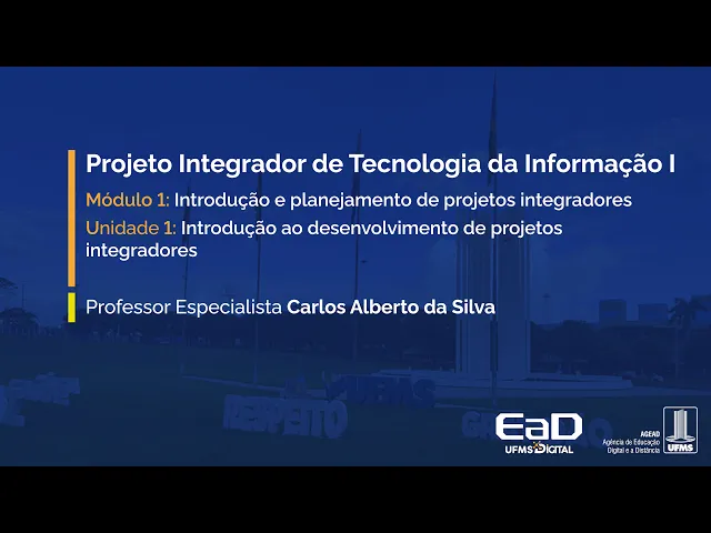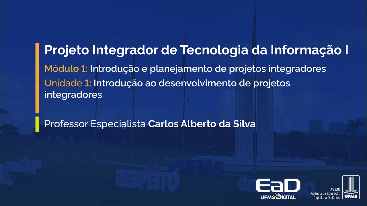 [Música] Olá sejam bem-vindos à disciplina projeto integrador de Tecnologia da Informação um eu sou o professor Carlos Alberto da facon da Universidade Federal do Mato Grosso do Sul e sou professor especialista que tá fazendo essa disciplina montando essa disciplina para vocês bem o módulo um a gente vai fazer uma introdução e vamos fazer um planejamento das ações que a gente pretende fazer nessa disciplina tudo bem mas vale a gente conversar um pouco mais e explicar o que é essa disciplina então a as normas vem mudando com o tempo né surgem novas exigências que que obrigam