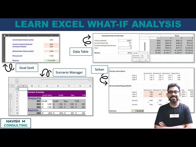 Learn Excel What-If Analysis (Scenario Manager, Goal Seek, Data Table, Solver)