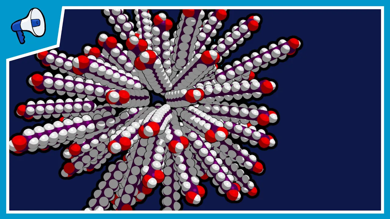When fatty acid concentrations are high enough, they bunched together automatically self-assembling into a stable ball! This happens because water molecules are attracted to the oxygen heads of the fatty acids sorta like a magnet, but water repels their oily carbon tails. When fatty acids pass near each other, their tails are pushed together by water eventually forming a ball.