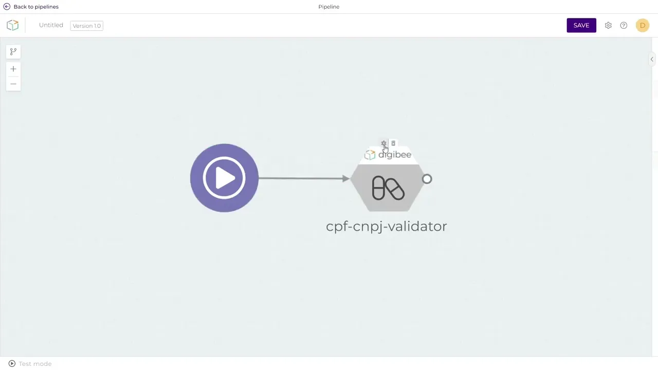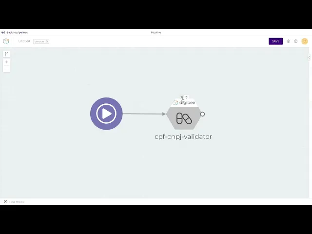 o step name que é o nome que aparece no Canvas e temos o CPF ou o CNPJ para validação aqui eu poderia passar um número qualquer por exemplo esse e já testar a cápsula mas eu vou fazer diferente vou passar um valor dinâmico aqui eu vou passar message ponto CPF que é um valor que eu vou colocar no meu Dion de entrada então confirmando eu vou vir aqui no test mode eu vou colocar aqui esse registro que é tem ID tem nome tem CPF tem Company local e CNPJ aqui como eu tô colocando message.on CPF