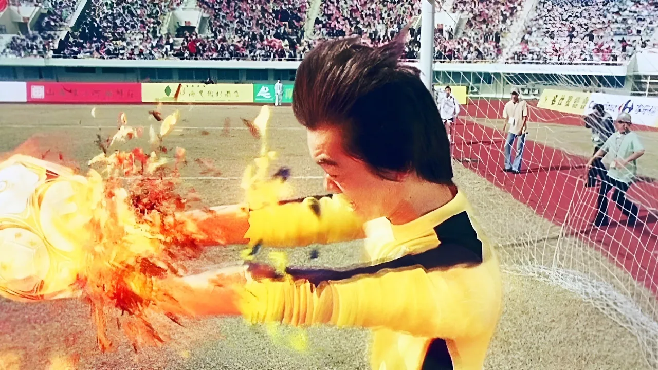 impressionado com a potência do chute de sing ele pede para analisar suas pernas e diz que sim que poderia usar essas técnicas do kung fu para virar um jogador de futebol hérnia de ouro conta que ele foi um grande jogador no passado e agora ele quer ser um treinador só falta achar jogadores para o time que ele tava querendo criar sangue conta que tem cinco irmãos que também são mestres do kung fu que poderiam entrar para equipe primeiro sim que faz o convite o seu irmão mais velho de kung fu conhecido como Cabeça de Ferro