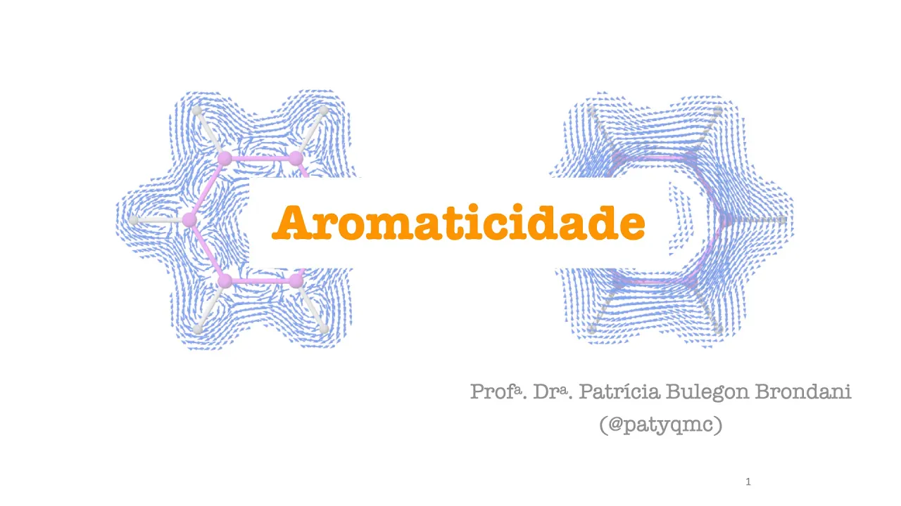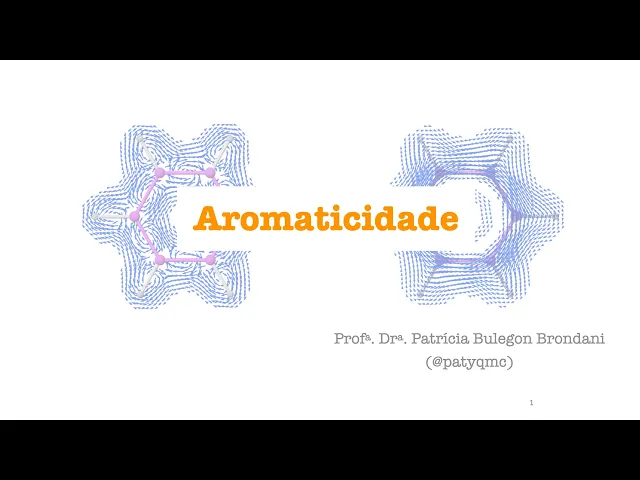 o Olá meu nome é Patrícia e nesse vídeo falaremos sobre o conceito de aromaticidade os compostos aromáticos possuem uma estabilidade especial aromaticidade é uma propriedade associada com a estabilidade Extra apresentada somente por certos tipos de sistema fica por exemplo alguns tipos de alunos bem anulenos são hidrocarbonetos monociclos que contém ligações duplas e simples alternadas e os compostos que são classificados como aromáticos possuem uma reatividade diferenciada nós iniciamos falando do benzeno que é o exemplo mais clássico de composto aromático o benzeno pode ser representado dessas três formas ele tem uma estrutura planar e possui seis átomos de carbono hibridizado SP2 e portanto seis por vitais percurso essa característica estrutural faz com que o benzeno tem uma deslocalização total dos elétrons pi e com que todas as ligações tem um mesmo tamanho e tem mas não são todos os anulenos que são aromáticos e para entendermos as razões para alguns demonstrarem essa estabilidade especial e outros não devemos falar de modelos que expliquem a aromaticidade e para classificar um composto em aromático é comum se aplicar a teoria de orbitais moleculares de rukia que é um dos modelos que explicam uma cidade Talvez o mais comum e muitas vezes essa teoria simplificada em regras diretas que funcionam para classificação dos sistemas aromáticos simples a teoria dos orbitais moleculares de hooke o fala que monociclos planares e completamente conjugados que possuem 4 n + 2 igual ao número de elétrons pi sendo que n é um número inteiro tem uma camada fechada de elétrons todo o senhor vitais ligantes e são excepcionalmente estáveis e esses sistemas são chamados de aromáticos e o benzeno por exemplo possui 6 elétrons pi devido a três ligações duplas Cada uma com 2 elétrons cada sendo assim 4 n + 2 = 6 e n = 1 ou seja um número inteiro para a fórmula citada Além disso vem sendo é cíclico planar e completamente congelado ele era o mágico os sistemas análogos que contém 4 n igual ao número de elétrons pi com n inteiro são chamados de antiaromaticos e são extremamente instáveis para entendermos a origem das formas 4 n + 2 pi e4n devemos olhar para os orbitais moleculares das espécies novamente iniciamos com o benzeno e o benzeno possui seis orbitais P que se combinam formando seis orbitais moleculares se aqueles orbitais formados em Sistemas conjugados já falamos em outros vídeos o orbital molecular de mais baixa energia deriva da combinação em fase de todos os seis orbitais p e chama-se orbital molecular fiz um e o segundo nível de orbitais moleculares de mais baixa energia tem um plano nodal a divisão simétrica de seis átomos de carbono com um plano nodal pode acontecer de duas maneiras através dos átomos ou através das ligações levando a dois orbitais moleculares PSI Ops 2 e o PS3 os dois orbitais moleculares sse2 sse3 tem a mesma energia ou seja são degenerados e os próximos orbitais possuem dois planos nodais e novamente Existem duas maneiras para fazer isso levando a dois orbitais moleculares degenerados se quatro e psíquico e o orbital molecular de mais alta energia possui três planos nodais O que significa que todos os orbitais P se combinam fora de fase e é o orbital molecular pieces e os orbitais moleculares pi 1 2 e 3 São coabitais moleculares ligantes os demais são antiligantes e e para mais detalhes sobre os orbitais moleculares do benzeno o material complementar é inscrito pode ser encontrado no meu site da w w ponto prática Mc. Páginas. Ufsc.