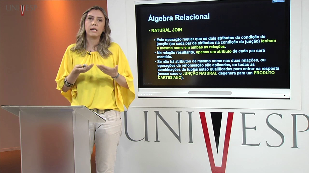 não há tributos mesmo nome nas relações nós temos que ousar uma operação de renomeação no atributo para que a gente coloque esses atributos que nós queremos que façam parte da condição de junção com nomes iguais ou nós teremos como resposta uma relação que combina todas as tabelas todas as duplas da tabela ou da relação é rico em todos os turnos da relação é isso significa que a junção natural degenera para um produto cartesiano que é uma operação que nós vimos na outra aula de álgebra relacional bom nós temos mais algumas variações de junção e uma