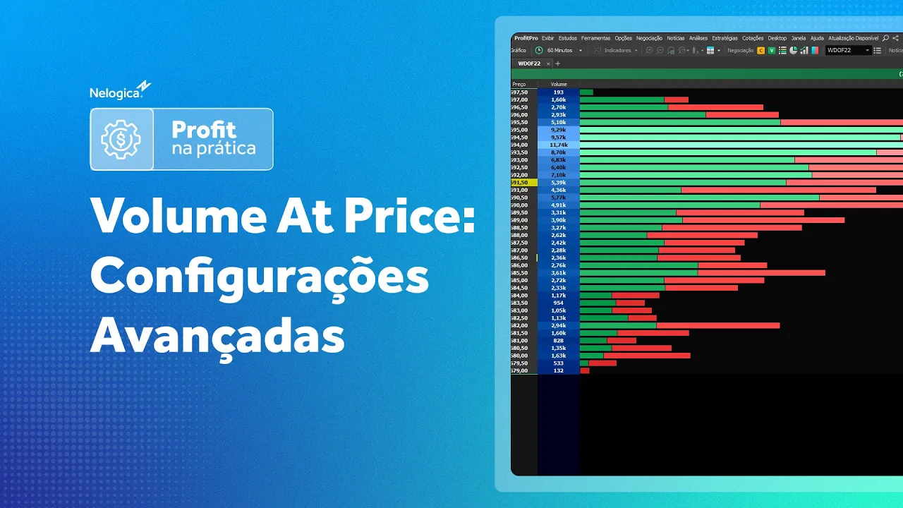 E aí [Música] o Olá Traders nesse vídeo preparamos um material especial para você vamos abordar as configurações avançadas do volume at Price e eu vou te mostrar como extrair as melhores configurações para o seu operacional Então vamos já para tela do prompt para iniciarmos vamos no menu ferramentas e selecionamos o volume de paz após clicamos com o botão direito do mouse e acessamos as propriedades do volume at Price on e na aba configurações temos o campo período personalizado que ao selecionarmos podemos filtrar o volume at Price por datas caso desejamos analisar algum movimento específico com