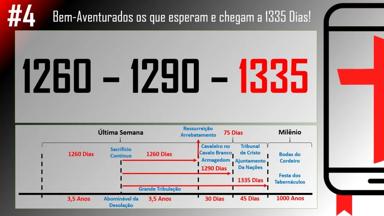 O Olá pessoal meu nome é Thiago diz do canal graça e conhecimento E hoje nós vamos gravar o último vídeo dessa série da dos 1.260 1290 1335 dias tá nós já gravamos um vídeo falando fazendo uma introdução abordando o Daniel 12 no segundo vídeo falamos aqui sobre os 1260 dias o que que acontece durante esses 1260 dias na outros tópicos que são usados outros nomes que são usados para falar de si mesmo período esse mesmo Intervalo de tempo como por exemplo um tempo tempos e metade de um tempo quarenta e dois meses três anos e