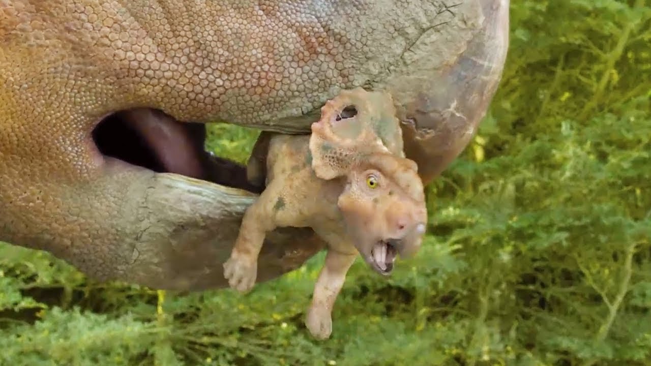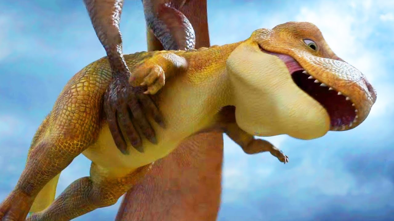 to eat it but when it finally goes to make its meal it is found by another of its kind that begins to dispute for the food in the middle of the fight they end up letting the egg fall into the river which is soon swallowed by a prehistoric fish but since it doesn't like the taste the animal drops the object and a Pteranodon picks it up taking the future baby even further away from its mother even after traveling a good few miles the flying reptile arrives on an isolated island but ends up being attacked by