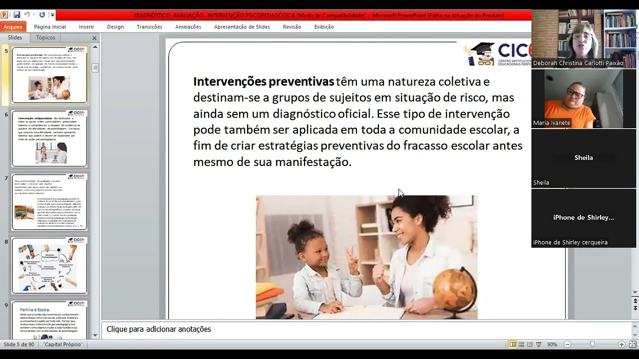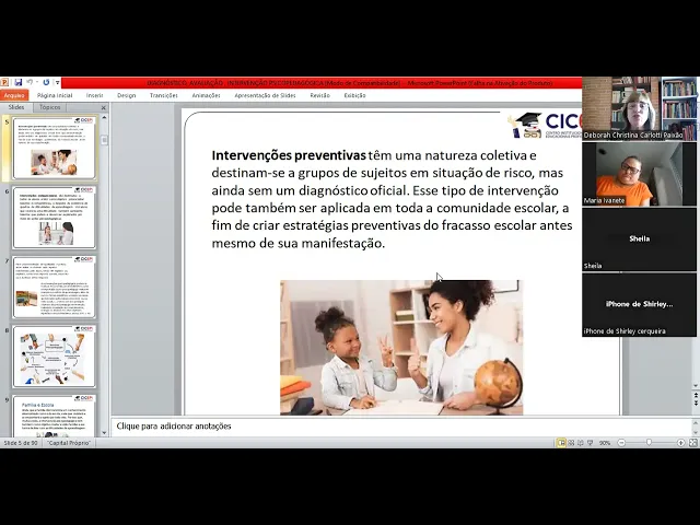 pública também tem esse cpra ass né gente a gente tem que seguir aquela aquilo que eles estão mandando e tudo bem não sei o quê mas a gente sabe olha a gente eu tô falando com os psicopedagogos aqui certo vou esquecer que nós somos professores mas a gente sabe que em sala de aula quem é que manda é o professor a gente liga lá a telinha E Passa lá o os os slides que nos são impostos eh que muitas vezes tem muitos erros inclusive mas o que que a gente faz a gente dá o comando