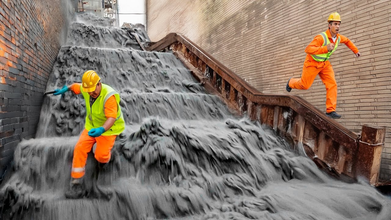 Regardez un matelas se compacter et l'air être extrait pour un transport facile dans des boîtes plus petites. La création de blocs de ciment devient un jeu d'enfant avec ce système de production rapide. Les larges rues fraîchement bétonnées sont lissées efficacement par un grand appareil de finition de chaussée.