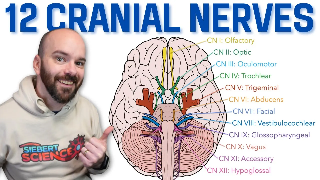 the human brain controls the rest of the body by sending signals through the spinal cord out through nerves that connect to the muscles and other organs of the body telling them what to do but there are actually 12 pairs of nerves that bypass the spinal cord alt together the 12 cranial nerves so in this video we're going to learn all 12 cranial nerves we'll learn what they do and we'll learn an acronym to help us remember those 12 cranial nerves for any test or class that you have we use some 3D models from anatomy. apppp