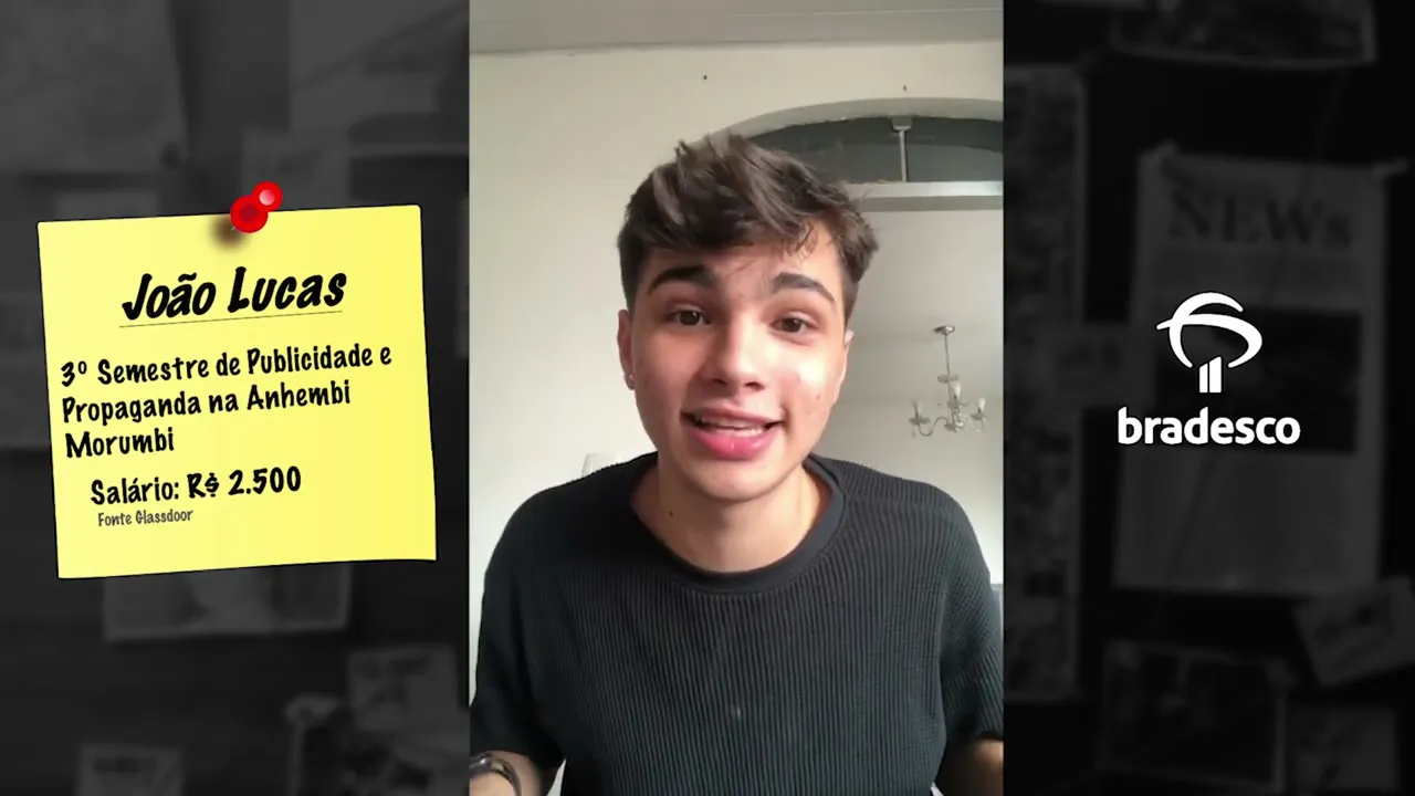 Fala galera meu nome é João Lucas tenho 20 anos sou estudante de publicidade e propaganda tô no terceiro semestre eu comecei a acompanhar Camilo Ricardo por conta de uma conhecida que fez um Stories deles que que postou um Stories deles e eu nem tava na faculdade ainda mas eu sempre tive muito essa vontade de conseguir um estágio de conseguir um estágio numa empresa grande entrei na faculdade e logo depois disso eu comecei a participar de processos seletivos só que eu não passava para nenhum só me lascava participava de processos seletivos de empresas grandes mas não