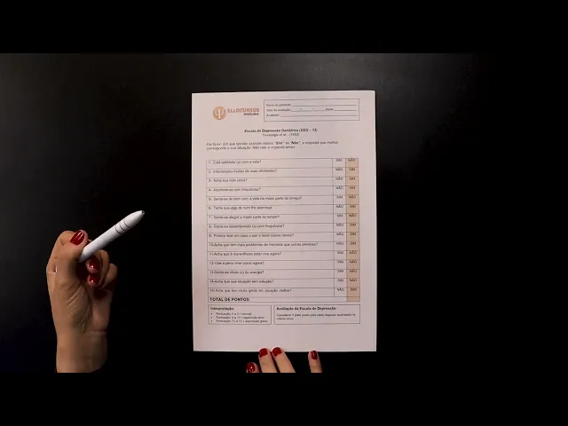 essa pontuação então a interpretação é como a gente sabe que a questão tá certa ou tá errada então a gente vai considerar um ponto para cada resposta assinalada na coluna cinza que aí seria essa daqui então a gente tem a pontuação de zero a 5 a gente tem uma pontuação normal de 6 a 10 uma depressão leve e de 11 a 15 uma depressão grave Lembrando aqui a gente tá trabalhando uma escala de depressão geriátrica Mas ela é interessante que ela venha acompanhada de outras escalas de Out outras informações de outras eh eh intervenções aí
