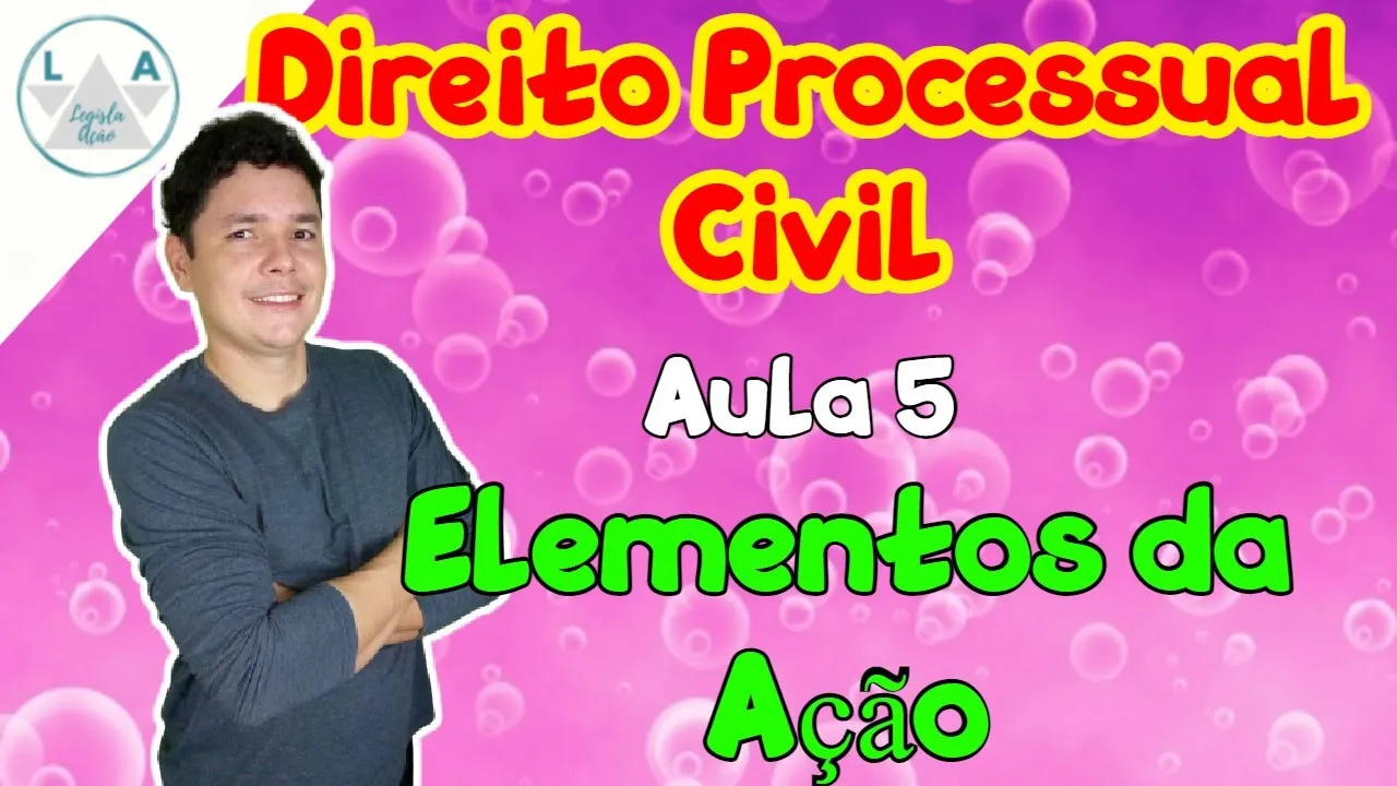 porque esse conteúdo não é muito grande essa aqui vai ser a base o alicerce aí para entendimento da matéria então Element da ação é o que veremos na aula de hoje então vai assando o canal ativando as notificações deixando o seu like aí para outro entender que esse conteúdo é relevante ajude outras pessoas e sem mais enrolação o vídeo elementos da ação Aula 5 aqui do nosso curso de Direito Processual Civil Então quais são os elementos da ação elementos da ação são as partes a causa de pedir eo pedido Isso aí são os três elementos