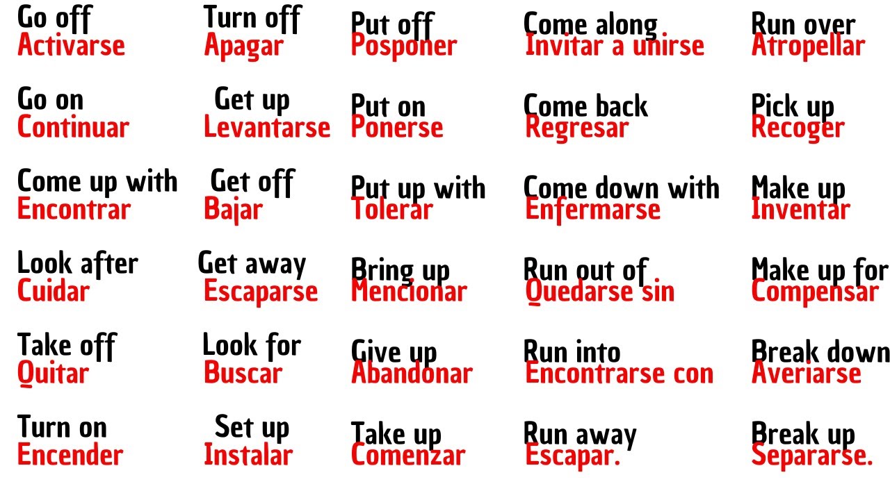 verb significa invitar a unirse se utiliza para invitar a alguien a participar en una actividad o movimiento example Are you coming to the party he asked Come Back Come Back este frasal verb significa regresar se utiliza para describir el retorno a un lugar o situación anterior example he Come back home tomorrow She came back to apologize come down with down este frasal verb significa enfermarse se utiliza para describir el comienzo de una enfermedad o malestar example came down he came down Last Night Run out of Run out of este frasal verb significa quedarse sin se