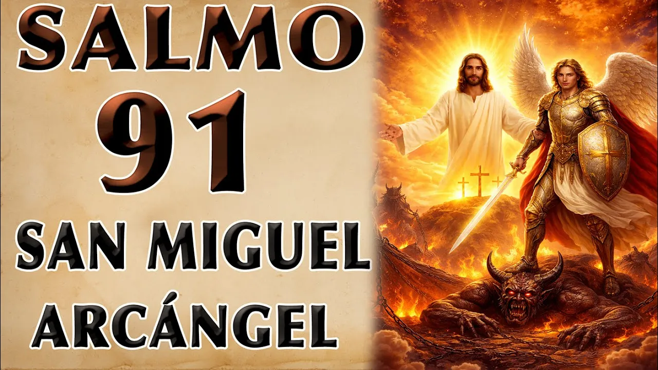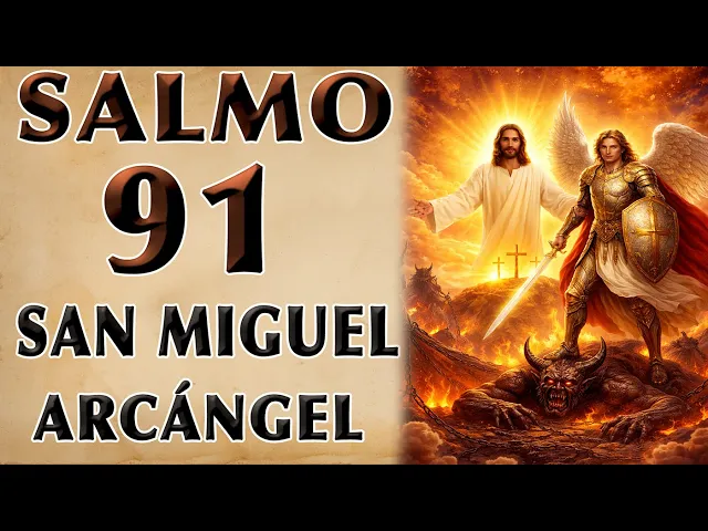 salmo 91 a San Miguel Arcángel [Música] San Miguel Arcángel protector y Guerrero elevo mis oraciones con plena fe que estas plegarias llegarán a ti sé que batallas por mí con fervor Guerrero poderoso me ayudas en esta lucha levantas mis pies para que no tropieces En ningún obstáculo tus alas son un refugio en mis días aciagos habitual la sombra de tus alas no caeré ni andaré en los malos caminos mis plegarias elevo siempre hacia ti todos los días y noches sin cesar plena fe tengo en tu poderosa presencia porque luchaste contra las huestes de maldad venciendo