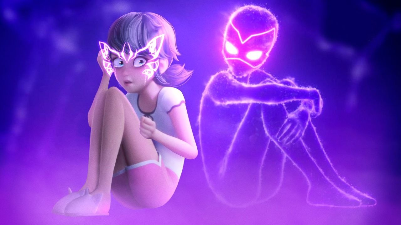 mas na parte onde a Marinete fala que tem um segredo e que ninguém sabe sobre ele Vemos as imagens do Gabriel agres e as três transformações dele rock mof Shadow mof e monarque e a gente viu lá no especial de Londres que a garota não contou para ninguém da verdade nem mesmo pra sua melhor amiga Alia Quem dirá o Adrien né tanto que nessa cena A Mari tá olhando na direção oposta do do seu namorado matutando todas as preocupações e Segredos que ela vem escondendo de todos até que o Adriano olha pra Marinete com essa