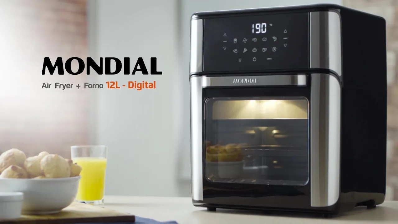 e se pudesse unir a tecnologia da AirFryer com espaço e a versatilidade do forno a família de airfryers Mondial continua crescendo conheça AirFryer forno da Mondial a solução inovadora que juntou o melhor dos dois mundos permitindo assar com perfeição e fritar sem óleo AirFryer forno é uma gigante na categoria com uma capacidade total de 12 litros prepara grandes porções de uma só vez com mais facilidade praticidade Ela conta com duas assadeiras antiaderentes para preparar pães de queijo nuggets pizza brotinho e muito mais tudo isso com a tecnologia que você já conhece que circula o ar