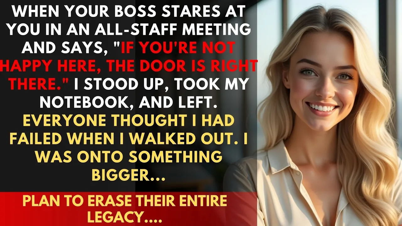 He just stared straight at me and said, "If you're not happy here, the door is right there. " Silence. Everyone turned toward me, waiting to see if I'd shrink or stand.