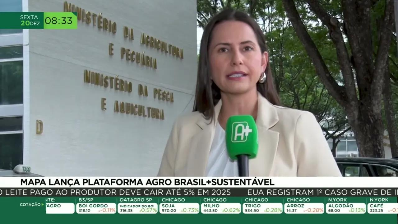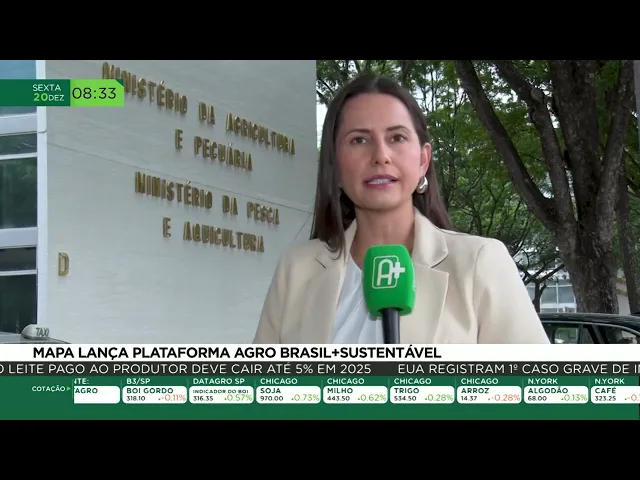 Ministério da Agricultura e Pecuária lançou a plataforma agrobrasil mais sustentável a tecnologia vai retratar com exatidão a sustentabilidade do agronegócio brasileiro a gente confere todos os detalhes agora na reportagem da Fernanda S uma proposta tecnológica inovadora que promete alavancar ainda mais o Agro brasileiro em um só lugar os produtores vão obter informações sobre a produção Agro pecuária sustentável no Brasil de forma rastreável e confiável de banco de dados e instituições governamentais tudo isso vai estar na plataforma agrobrasil mais sustentável lançada pelo Ministério da Agricultura e Pecuária produtor entra no no portal do do serpo do
