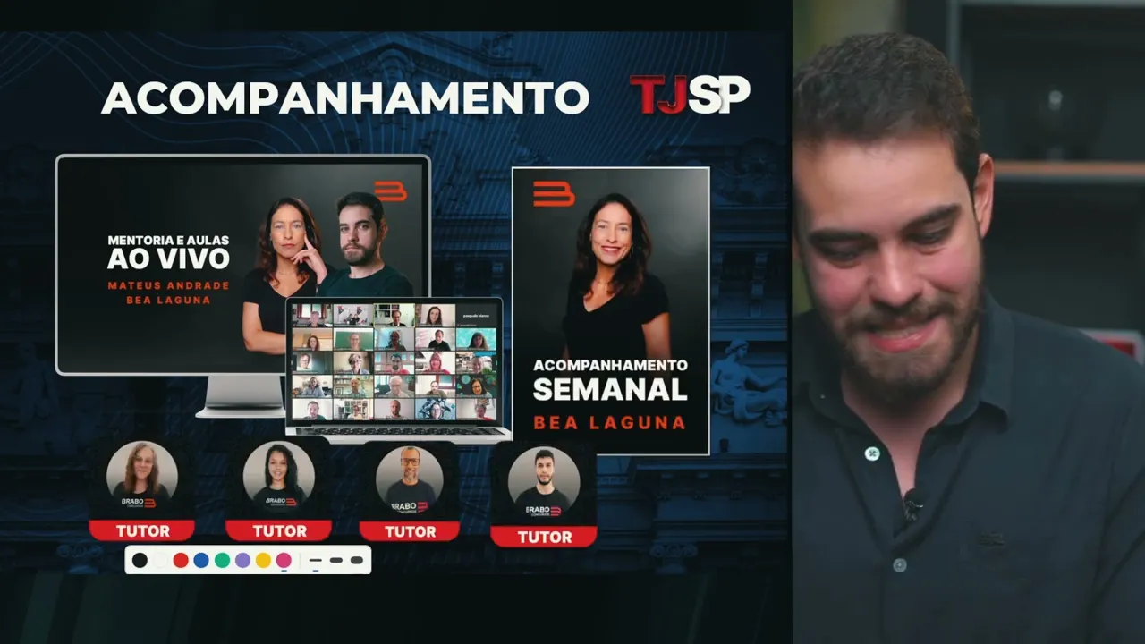TJ de 2024 200 novas questões atualizadas na apostila mestre em questões Mais um ponto importante o acompanhamento comigo mensalmente até a data da prova com a Bea Laguna toda semana e com seus tutores de segunda a sexta os tutores são pessoas aprovadas em concurso público para te guiar até o próximo TJ São Paulo essa aqui é uma novidade do nosso curso da brabo concursos a gente foi turma reconhecido pelo MEC Então os avaliadores do MEC eles fizeram uma avaliação no curso de escrevente da brab concursos e a gente ganhou um selo ganhou uma chancela de