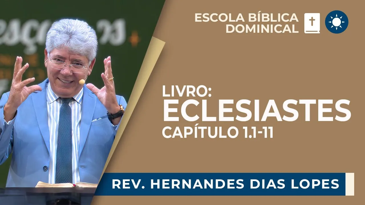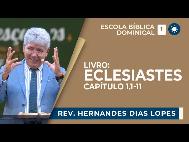 [Música] muito bem meus irmãos nós vamos dar início Então à nossa escola bíblica dominical desse dia 25 de fevereiro de 2024 iniciando hoje a exposição do livro de Eclesiastes então peço que você já abra a sua Bíblia comigo Eclesiastes Capítulo primeiro hoje nós vamos tratar dos versos 1 a 11 abra a sua Bíblia então nesta passagem por gentileza Eclesiastes Capítulo primeiro versos de 1 a 11 lido o texto mantenha a sua Bíblia aberta para acompanhar a exposição tá escrito assim palavra do pregador filho de Davi rei de Jerusalém vaidade de vaidades diz o pregador vaidade