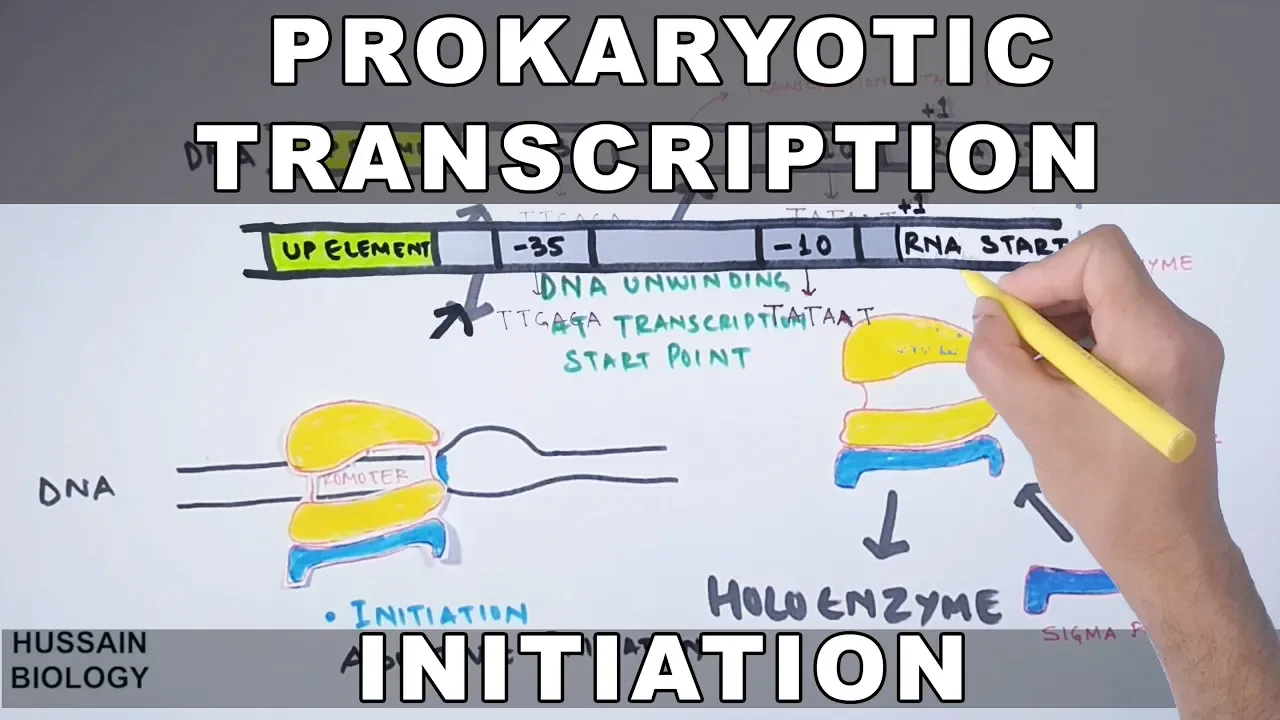 Oh in the series of videos we have been discussing about the proteins and enzymes in prokaryotic and eukaryotic transcription now in this video we'll be discussing about the mechanism of prokaryotic transcription the prokaryotic transcription proceeds in three steps initiation elongation and termination and this process is driven by DNA dependent RNA polymerase enzyme which transcribes the DNA the RNA polymerase is a core enzyme which is having different subunits it has got alpha beta beta Prime and Omega subunits the alpha subunit is further divided into 2 4 the subunits alpha 1 and alpha 2 subunit moreover for