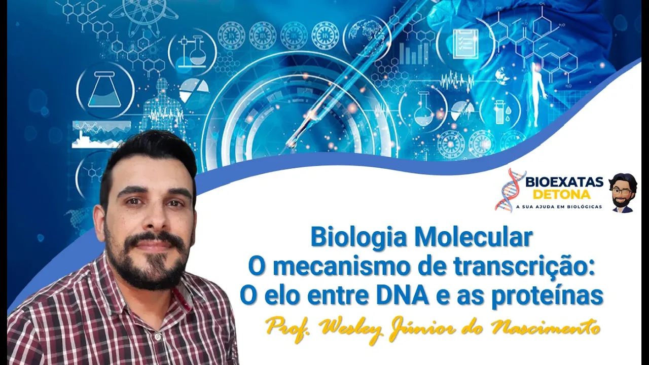 Olá tudo bem com você aqui é o professor Wesley Essa é a terceira aula do curso de biologia molecular e nessa videoaula discutiremos o mecanismo de transcrição mecanismo este que é extremamente importante porque vai estabelecer um elo entre o DNA que é a molécula que carrega toda a informação genética de um indivíduo e por sua vez também vai fazer aqui a ponte pra produção das proteínas então nós veremos que esse processo tanto nos eucariotos quanto nos procariotos é muito importante beleza então vamos lá na primeira aula do nosso curso eu comentei com vocês que um