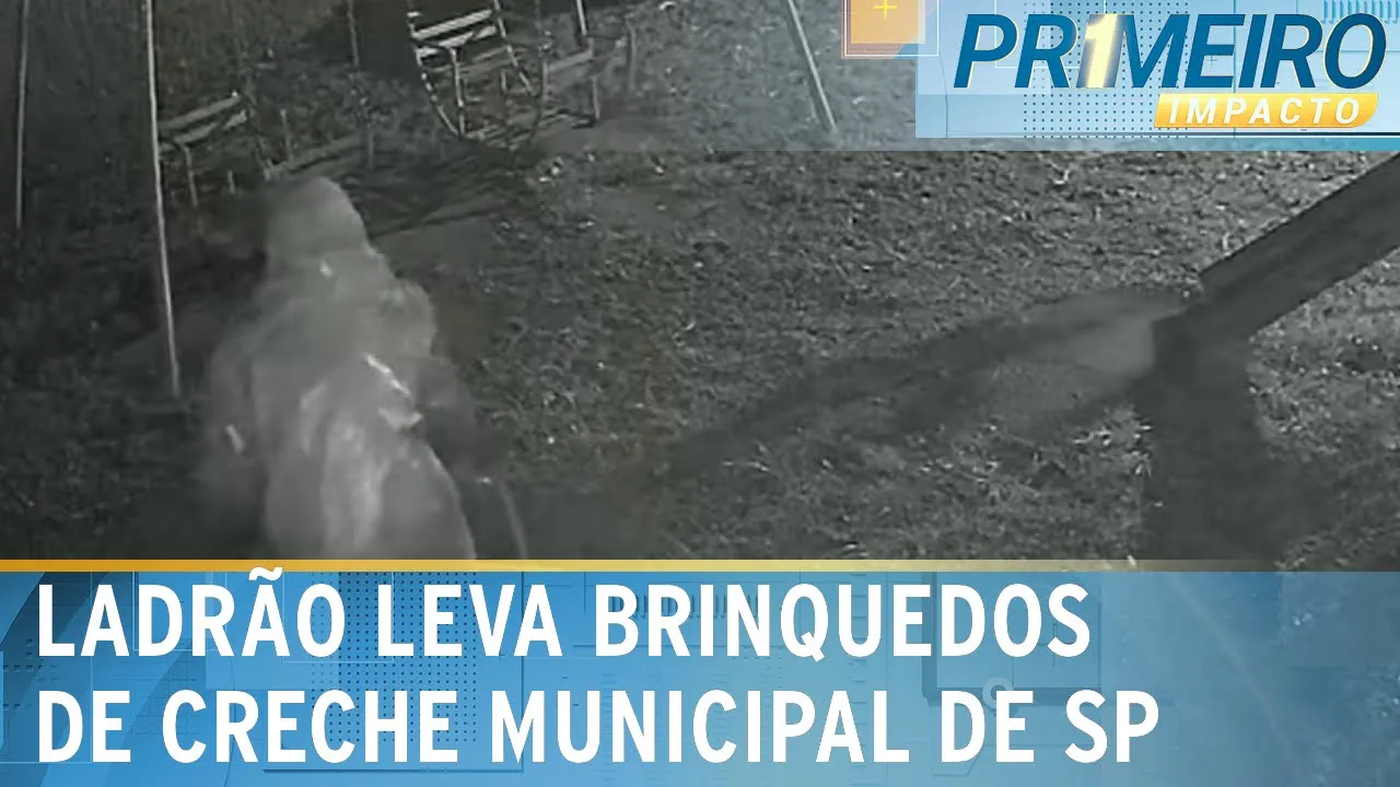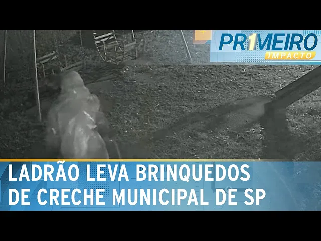 Bandido pula muro e furta os brinquedos de creche em São Paulo | Primeiro Impacto (29/10/24)