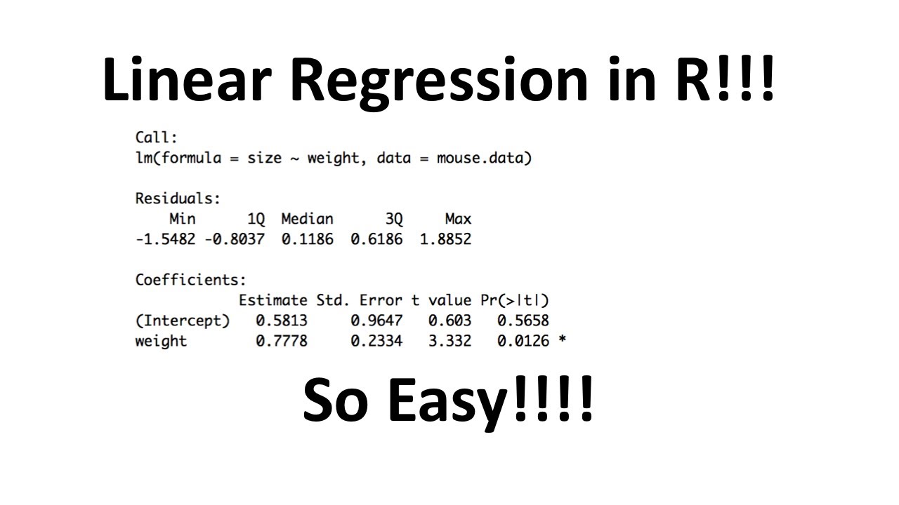 Say that on a boat headed towards that quest Join me on this boat. Let's go to stab quest it's super cool Hello, and welcome to static quest Static Quest is brought to you by the friendly folks in the genetics department at the University of North Carolina at Chapel Hill Today, we're going to be talking about linear regression Aka General Linear models part one there's a lot of parts to linear models But it's a really cool and powerful concept so let's get right down to it. I Promise you I have lots and lots of slides that talk about all the nitty-Gritty details behind linear regression But first let's talk about the main ideas behind it The first thing you do in linear regression is use least squares to fit a line to the data The second thing you do is calculate R squared lastly calculate a p-value for R squared There are lots of other little things that come up along the way but these are the three most important concepts behind linear regression in the stat Quest fitting align to Data we talked about fitting align to Data duh But let's do a quick review.