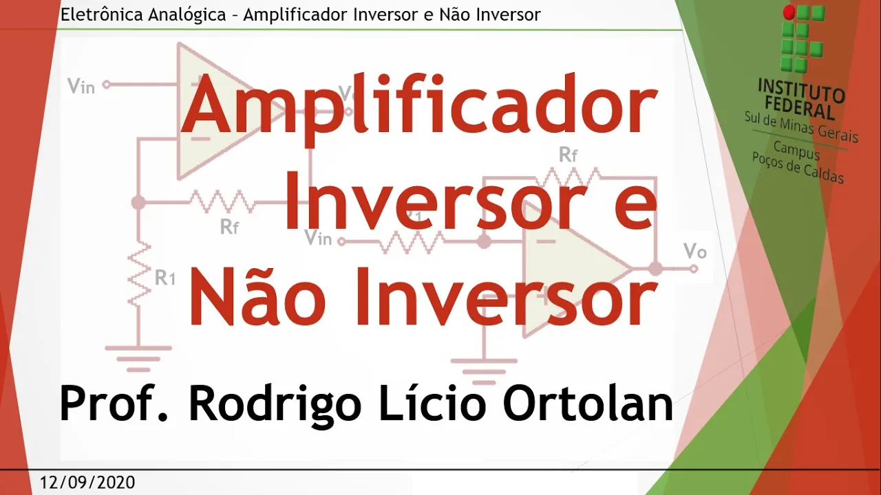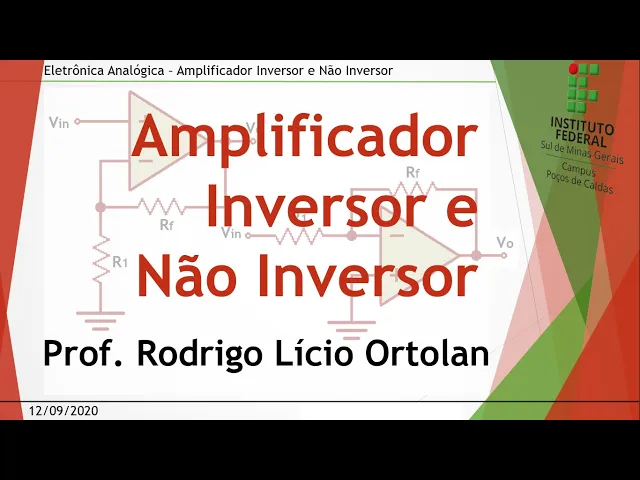 Oi bom dia boa tarde boa noite aqui quem fala é o professor Rodrigo e hoje a gente vai dar continuidade Às nossas vídeo aulas de eletrônica analógica seguindo então que a gente vinha falando sobre amplificadores operacionais Hoje a gente vai mostrar como que se monta um circuito amplificador inversor e o circuito amplificador não inversor segue para aula então pessoal o amplificador inversor e não inversor vamos lá então primeiro a gente vai ver o amplificador inversor esse aqui é um circuito novo amplificador inversor O que que a gente tem a gente tem a entrada gente tem