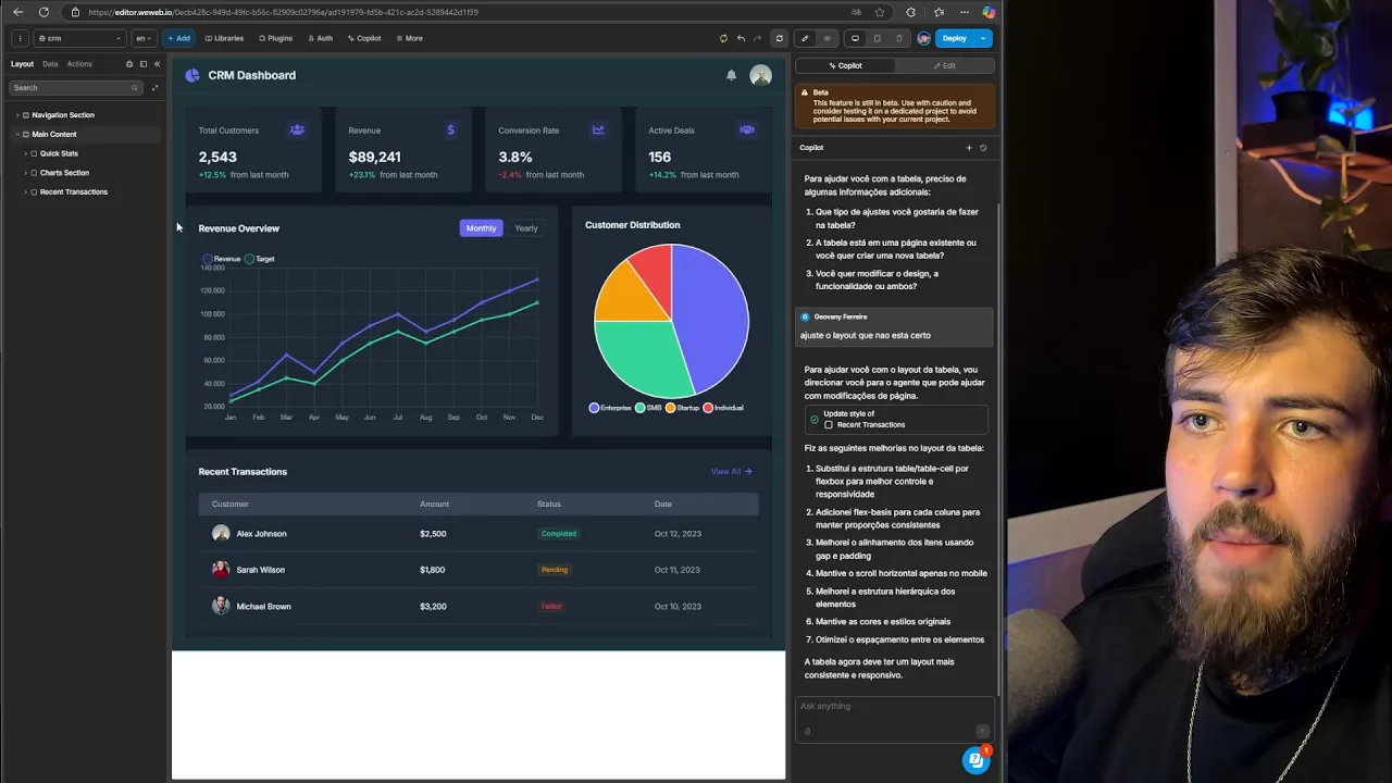 Lovable? Não. Windsurf? Não. Bolt? Tbm não. E o novo Copilot 2.0 do WeWeb criando Aplicativos com IA