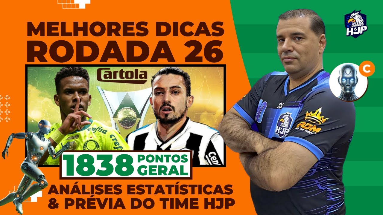 Rocher e treinando o nosso time o Abel Ferreira bom pessoal essa Essas foram as dicas para a 26ª rodada do Cartola gostaria de pedir a todos que deixem o like e se inscrevam no canal vou ficando por aqui Valeu e até os próximos vídeos