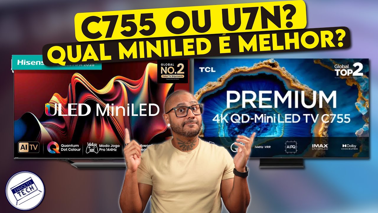 involt teec nas redes sociais que eu tô deixando aí embaixo e como eu sei que você já fez isso aí eu ainda te ajudo mais deixando na descrição o link direto pra compra desses modelos que eu tô citando aqui no melhor preço eu já falei sobre o modelo mais básico ap p755 falei também sobre a TV intermediária a c655 e agora vem os modelos topo de linha que são os modelos c75 e c855 aqui no invotec o modelo que já foi testado Foi a c75 que olhando pro mercado de forma geral é a melhor TV