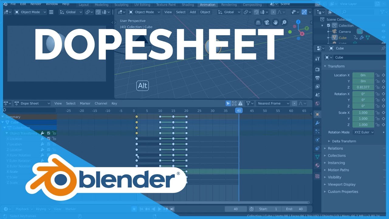 the time line is how you view all the frames in your scene it provides simple tools for navigating the frames of your animation let's talk about the fundamentals of the timeline editor in blender to showcase exactly what the timeline does let's try to make a quick bouncing ball animation with our cube here except instead of a cube let's use a ball to do that we can simply subdivide our cube by holding ctrl and pressing 2 on the number row I'm also going to right-click the sphere and select shade smooth wonderful now let's get animating you