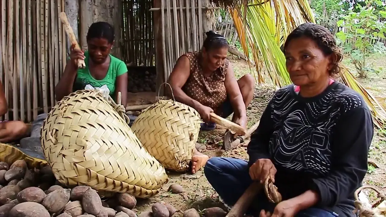 vara né tia mara e bota no chão só que coisa que você não pode esquecer não era coisa que é de raiz é origem para nós o palmeiras é vida né porque ela tá aqui há anos daí a gente sobrevive disso né eu tenho orgulho de dizer que eu sou quebradeira de coco eu já falei de quebrar dela aqui tem um filho a quebradeira é um orgulho eu tenho orgulho de dizer que eu fui criada quebrando esse cocô que isso aí é uma coisa que nunca pode acabar é a nossa profissão de quebradeira de coco