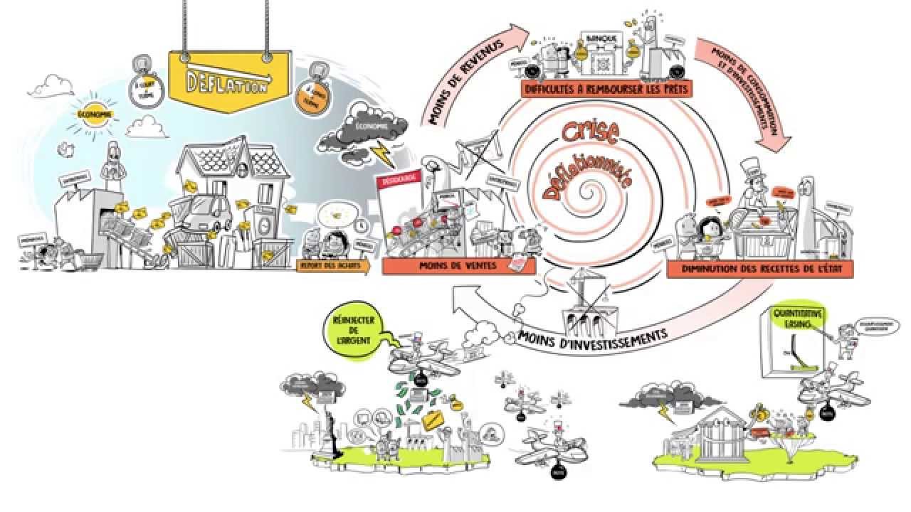 de la quantité de de monnaie en circulation crée donc ce que l'on appelle l'inflation si les salaires n'augmentent pas aussi vite que ses prix les ménages ne pourront plus acheter autant de marchandises ils vont moins consommer et c'est le chiffre d'affaires de l'ensemble des entreprises qui va être touché trop d'inflation peut donc nuire à l'activité économique si au contraire il n'y a pas assez de monnaie en circulation elle devient rare tout le monde a deux fois moins de monnaie les prix doivent alors se réajuster et diminuer on parle alors de déflation les ménages reportent leurs