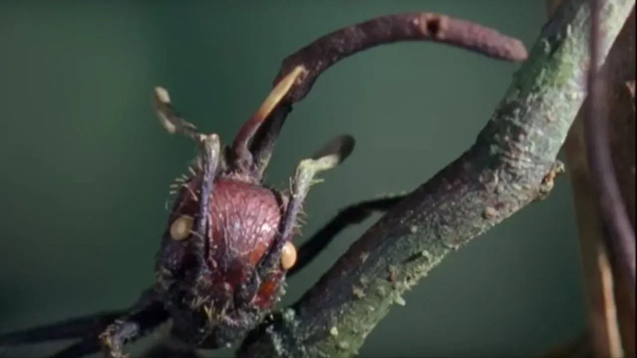 incredibly eighty percent of all insects live in jungles few are more successful than the ants there can be eight million individuals in a single hectare but jungle ants don't have it all their own way these bullet ants are showing some worrying symptoms spores from a parasitic fungus called cordyceps have infiltrated their bodies and their minds [Music] its infected brain directs this ant upwards then utterly disorientated it grips a stem with its mandibles those Afflicted that are discovered by the workers are quickly taken away and dumped far away from the colony it seems extreme but this