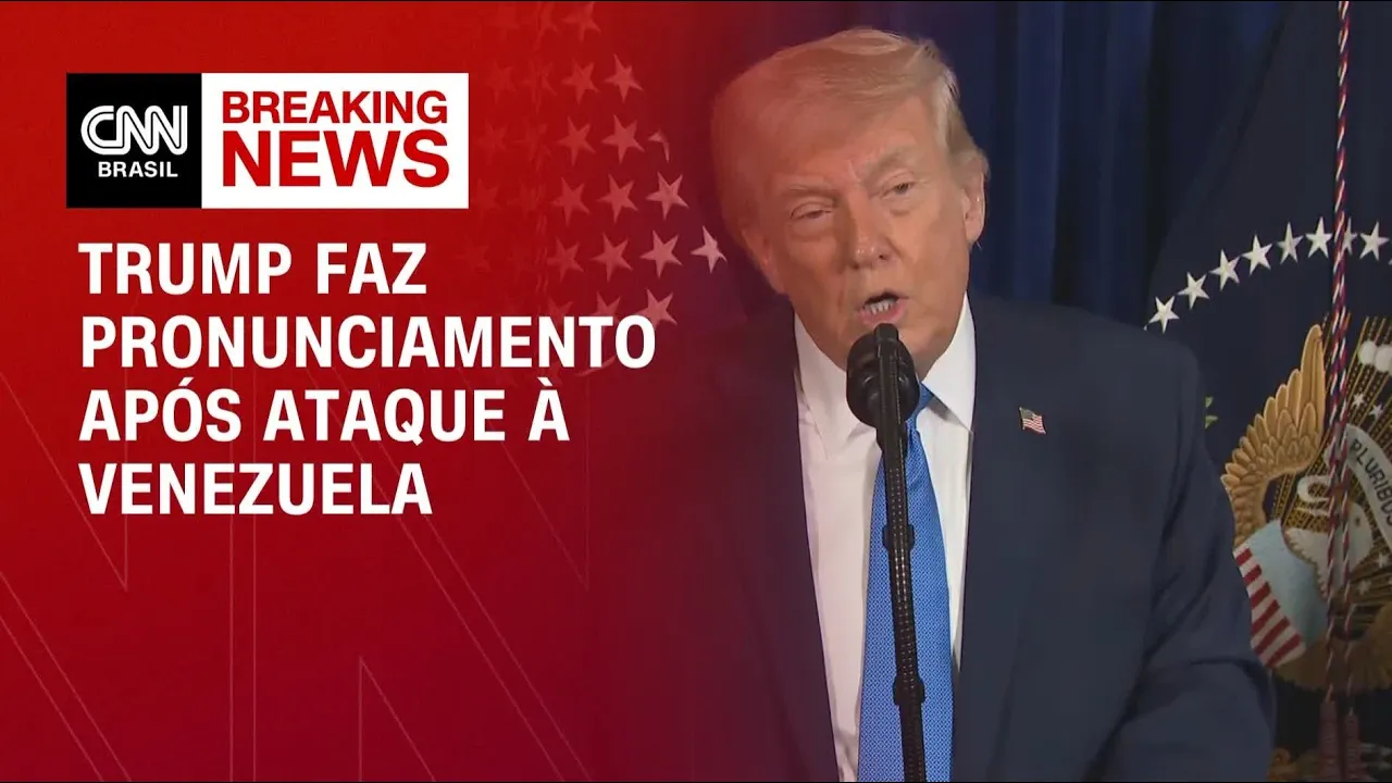 Donald Trump chega neste momento. Iremos exibir ao vivo e traduzido o primeiro discurso dele depois do ataque a Venezuela. Vamos acompanhar >> estarem aqui.