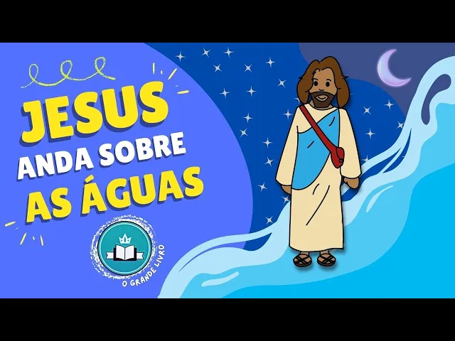e será que é possível andar sobre a água ficou curioso Então vem comigo vamos abrir o grande livro é E aí se vocês se lembram da história que contamos aqui sobre a multiplicação dos pães e dos peixes Então essa história que vamos contar hoje se passa logo após Jesus fazer esse lindo milagre e ainda não assistiu pega o link que deixamos na descrição e corre lá para ver bem agora que você já assistiu a história da multiplicação vamos começar a história de hoje começa assim que Jesus despediu a multidão a quem alimentou com apenas cinco